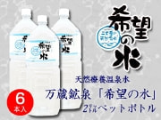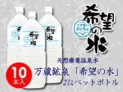 源水地直送の万蔵鉱泉「希望の水」を飲みやすく使いやすい2リットルのペットボトルにしました。 |