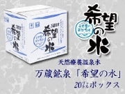 源水地直送の万蔵鉱泉「希望の水」を便利で使いやすい20リットルのボックスタイプにしました。 |
