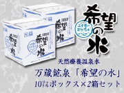 源水地直送の万蔵鉱泉「希望の水」を便利で使いやすい10リットルのボックスタイプをお得な2箱セットにしました。 |
