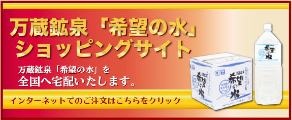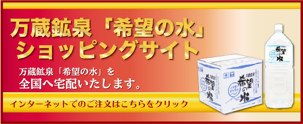源水地直送の万蔵鉱泉「希望の水」を飲みやすく使いやすい2リットルのペットボトルにしました。 |