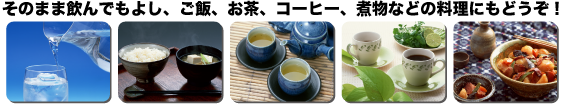 直接飲用頂くのがより効果的と思いますが、用途によってコーヒ-、お茶、料理水としても大変おいしく頂けます。